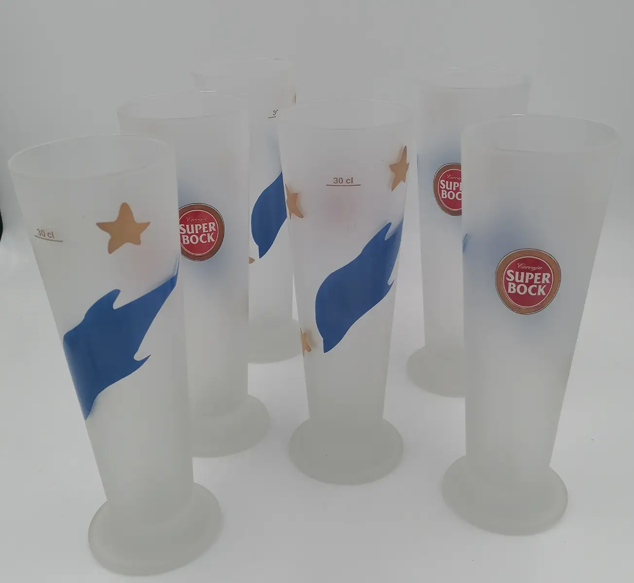 6 verres de la marque de bière Super Bock